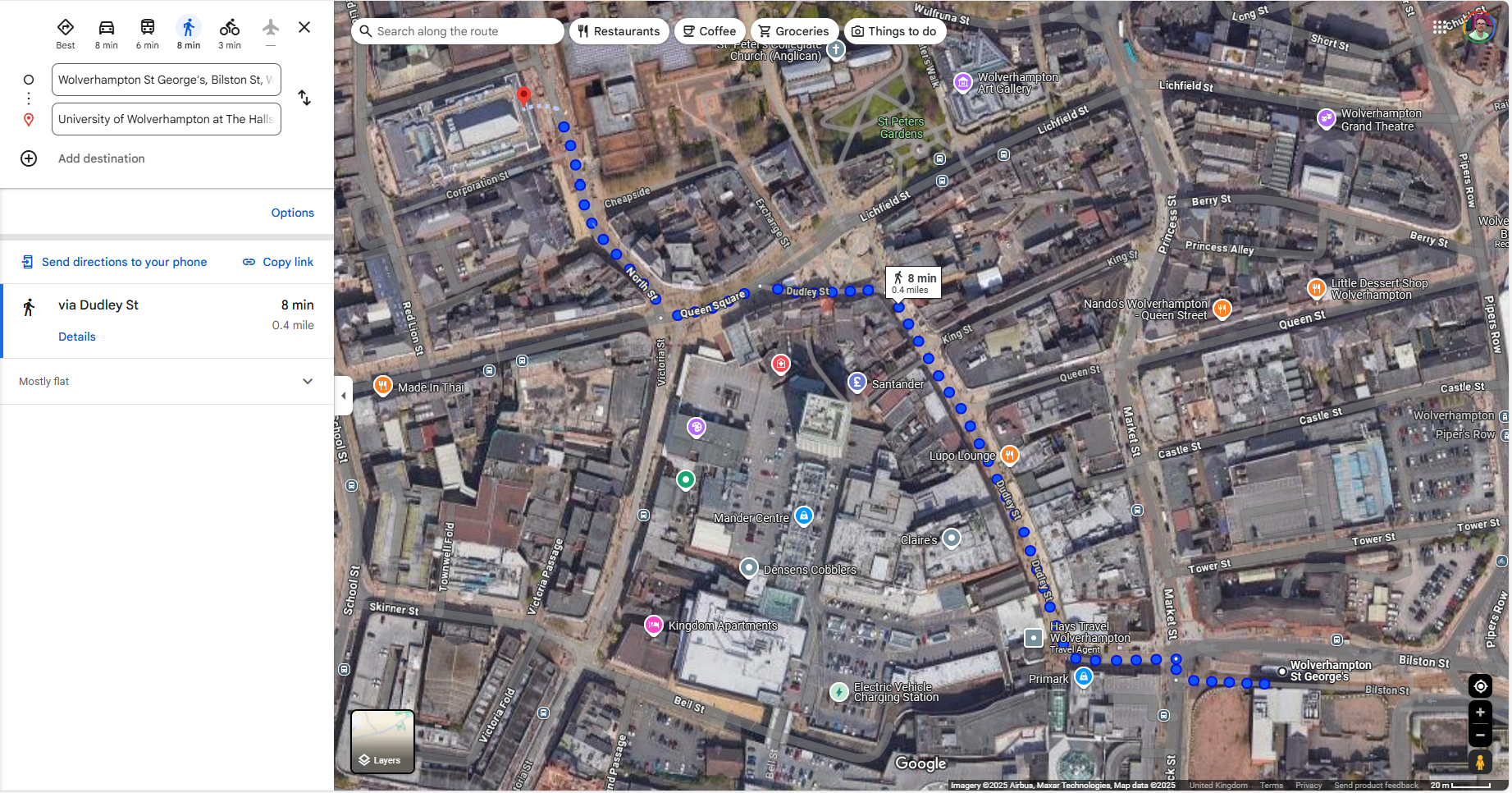 A link on the venue’s website takes you to Wolverhampton City Council’s page with information about Blue Badge parking in the city, including a very clear map. Some dedicated blue badge parking spaces in the city have time limitations.