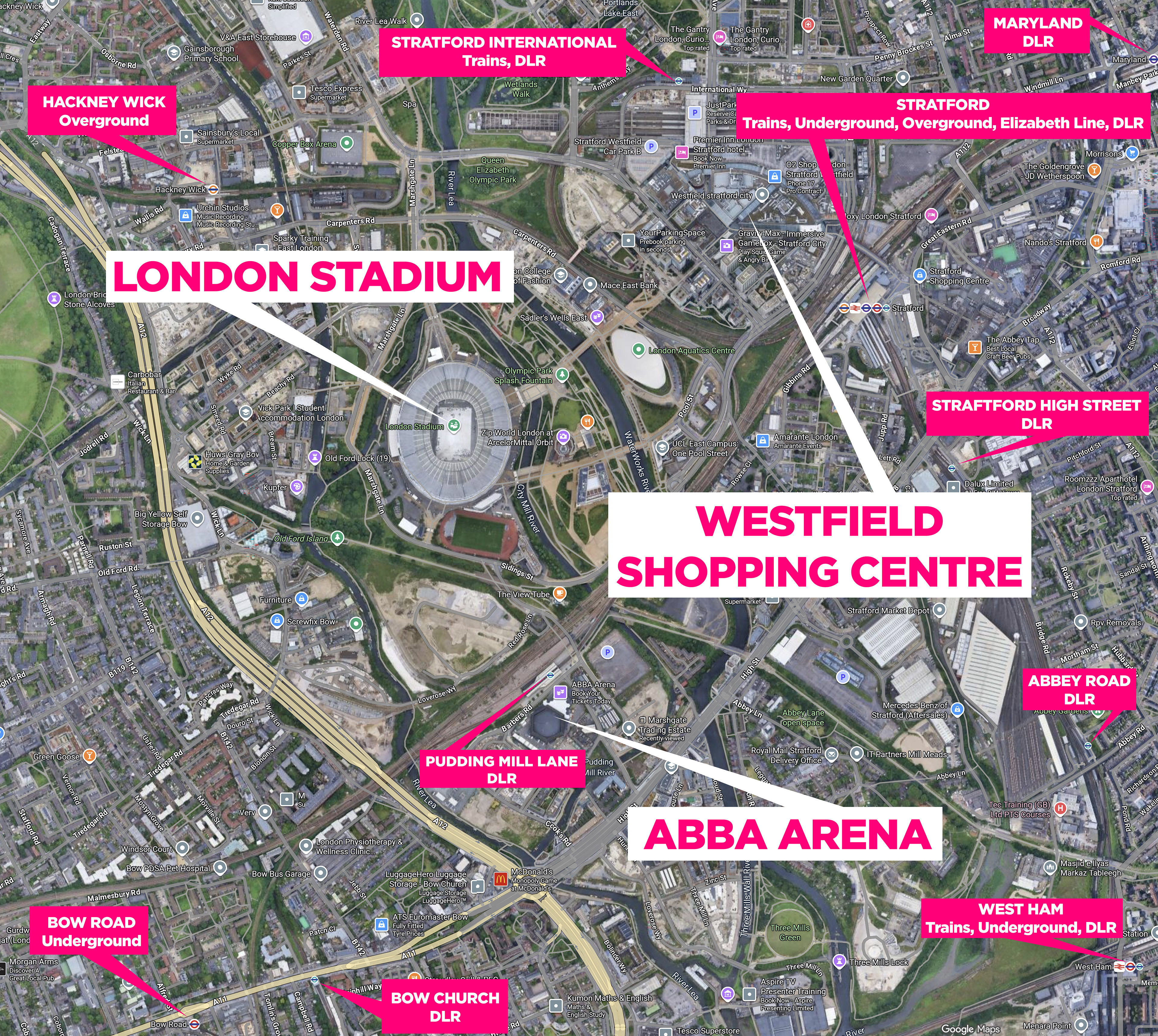 The ABBA Arena is situated in the Stratford area of northeast London, near the London Stadium (formerly known as the Olympic Stadium). The area underwent considerable regeneration for the 2012 Olympic Games. Since then, the area has continued to grow.