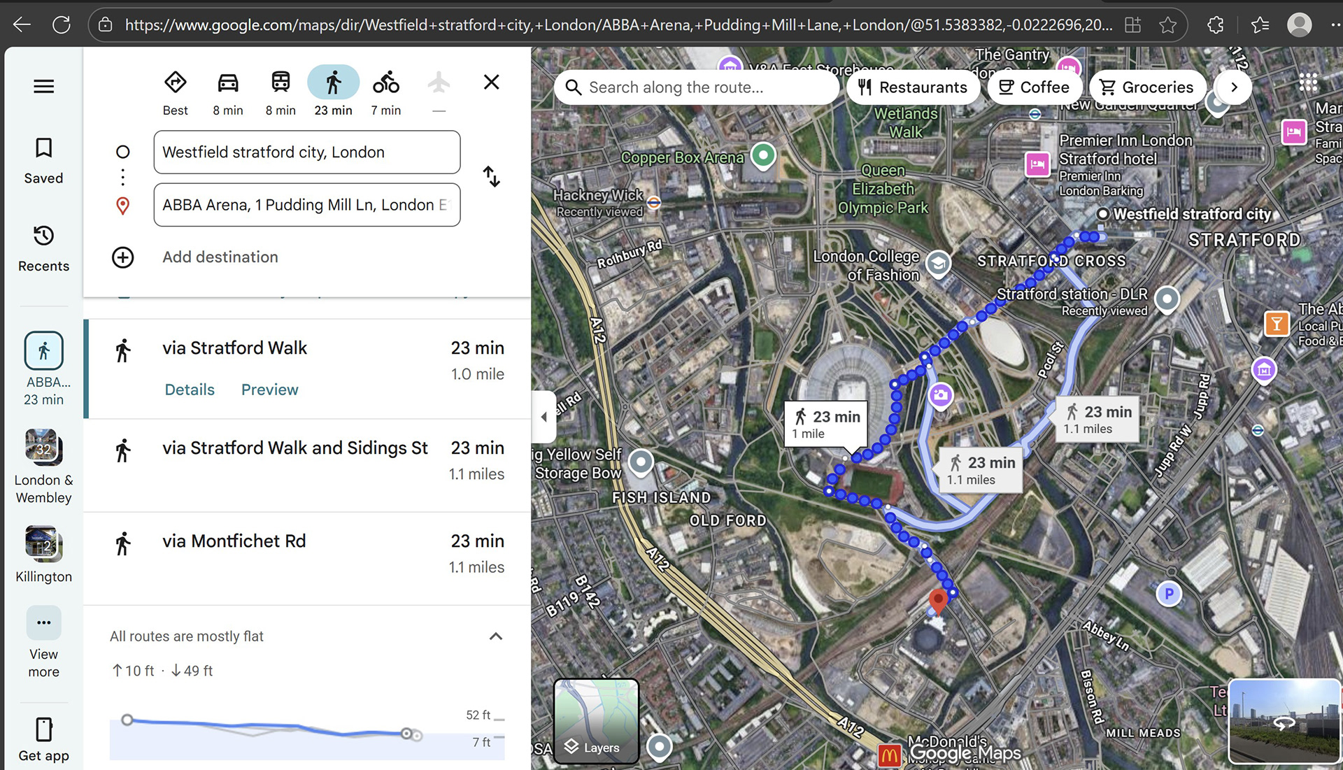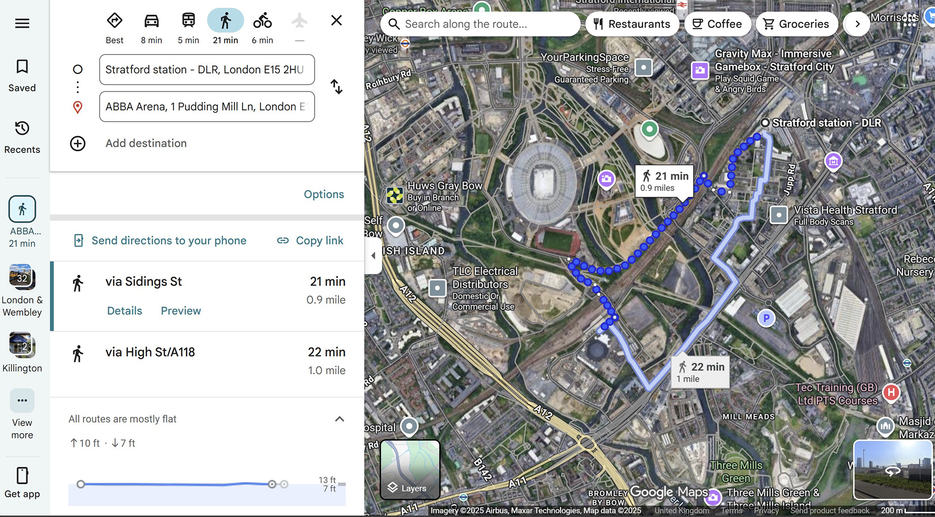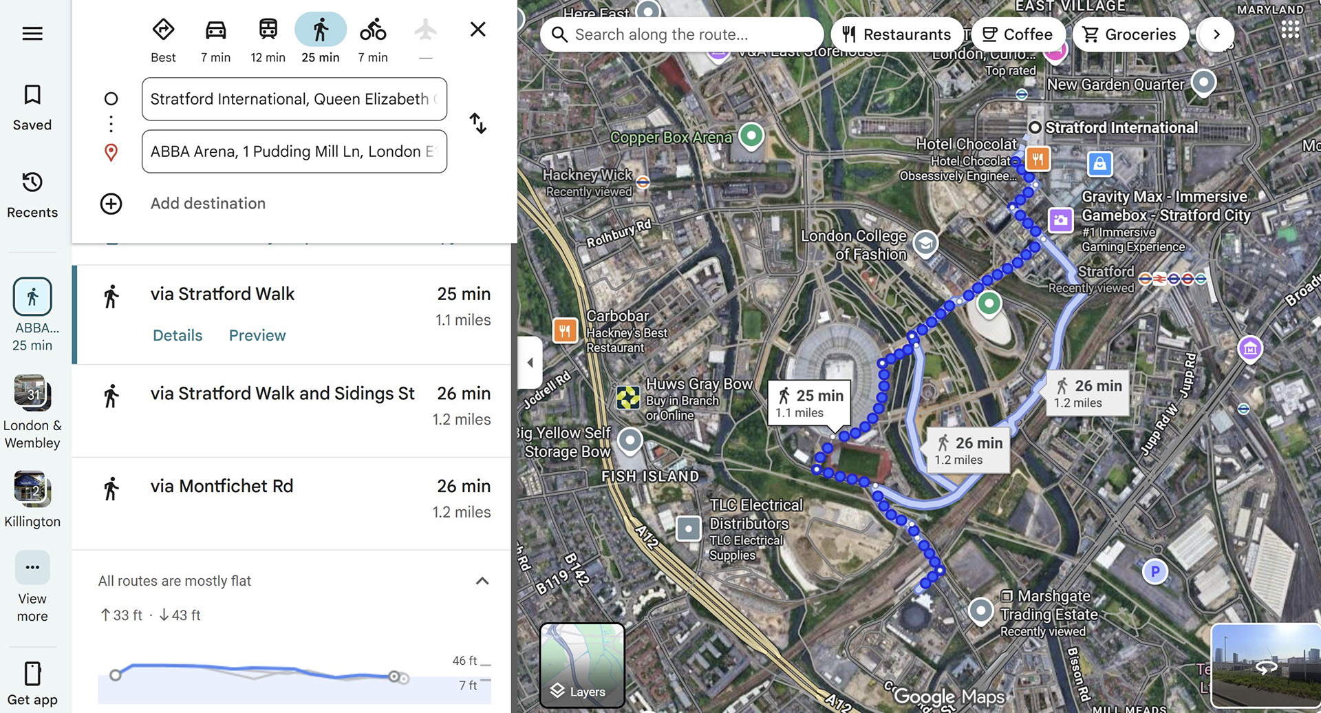 You can walk or roll to the arena from Westfield Shopping Centre and past the London Stadium. The area around the shops and the Stadium is step-free and relatively flat, but there is a change in elevation as you approach the ABBA Arena. It takes around half an hour, but it’s a nice scenic route on a nice day.