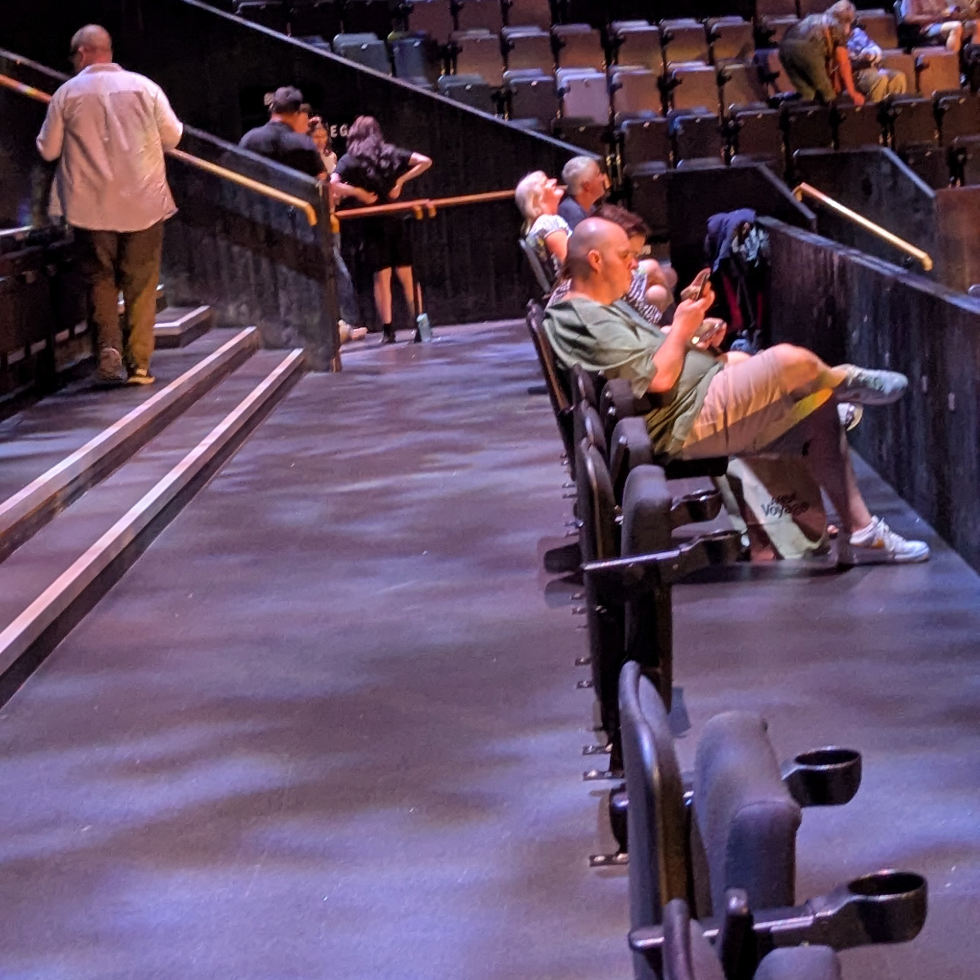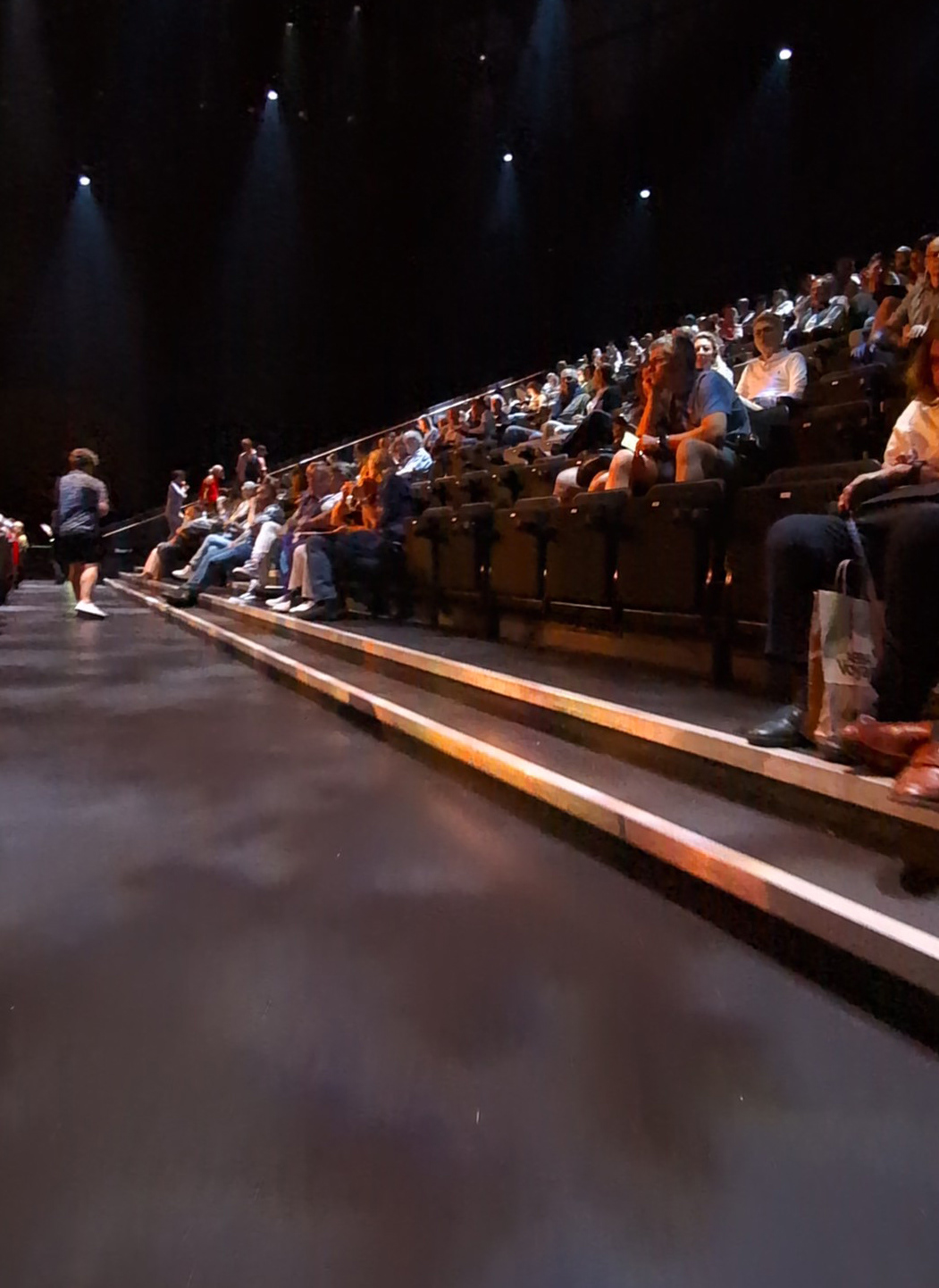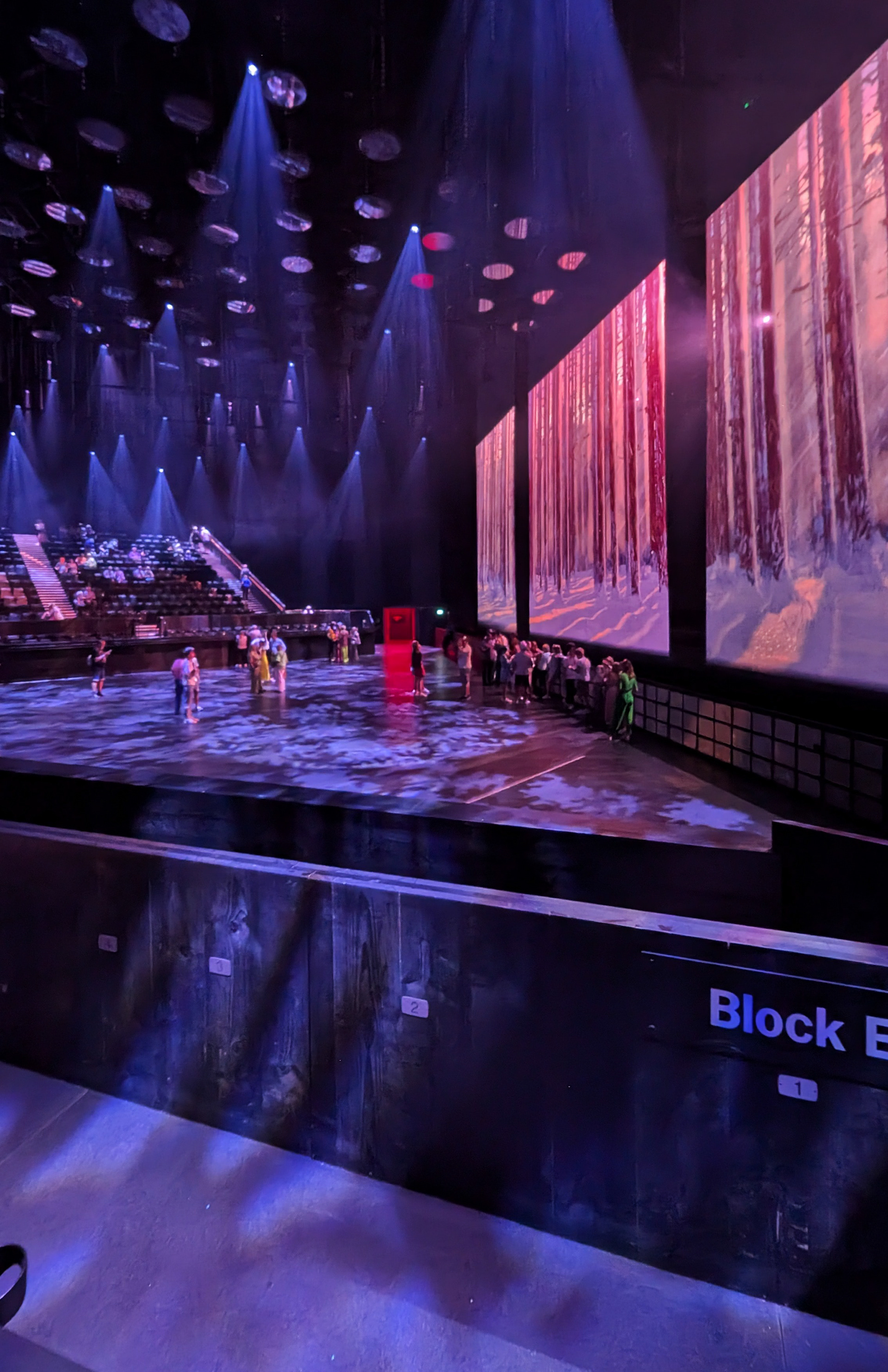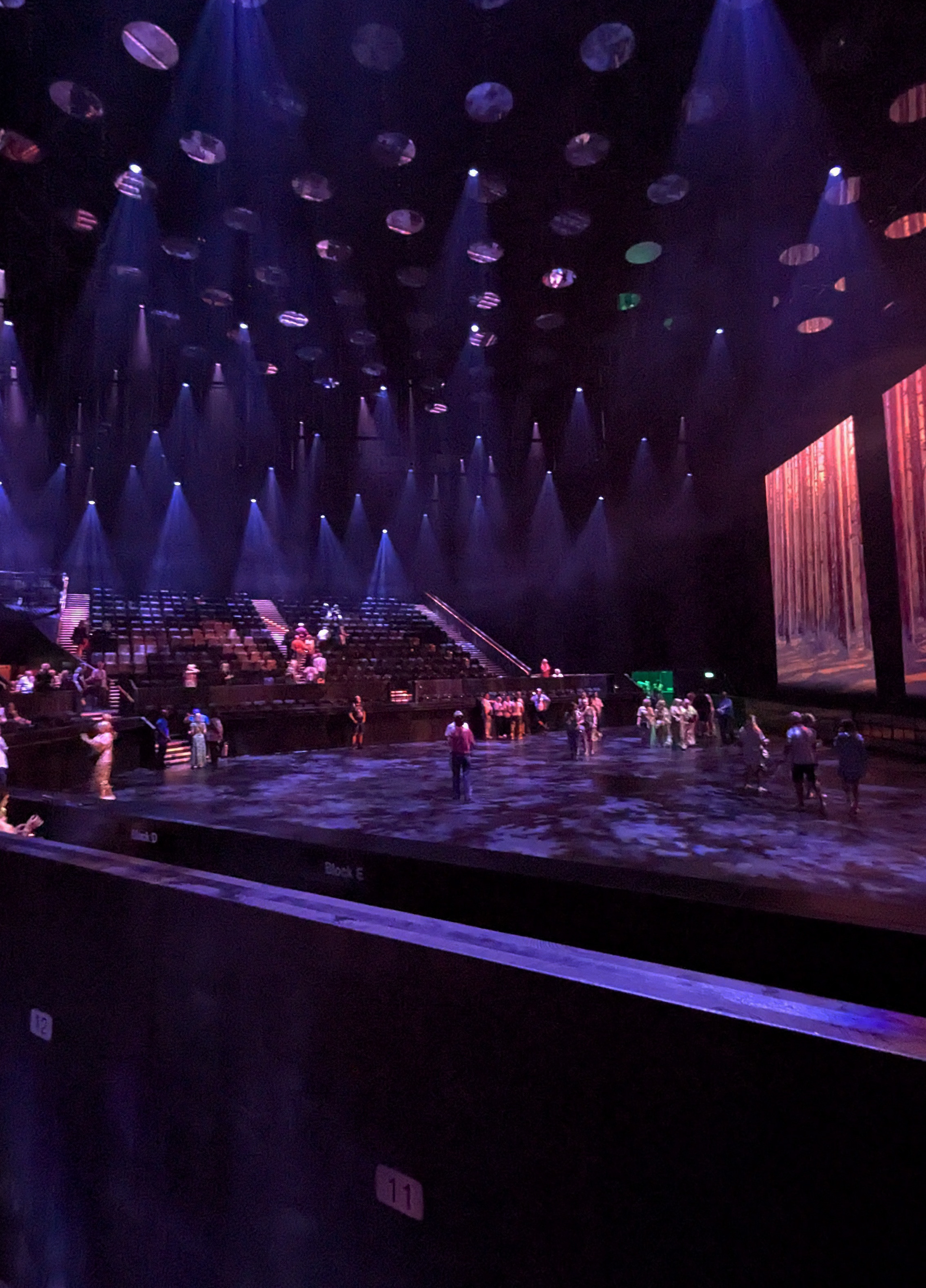 In the middle of the concourse is a wide entrance with two sets of double doors leading into the arena performance space. The doors are propped open once the performance space is open. There is signage on the wall indicating that no photography or filming is allowed in the auditorium, so I didn’t think we’d be able to document the seating and view. However, it was actually okay to take pictures before the show - I’ll explain more later!