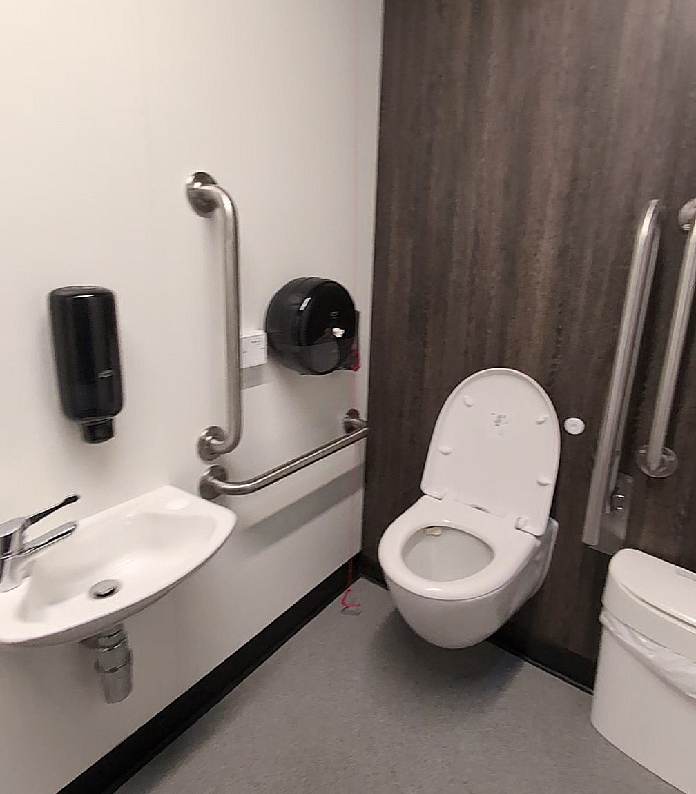 There are toilets, including an accessible toilet, at each end of the concourse. The accessible toilets don’t require a radar key and have the basic facilities needed.