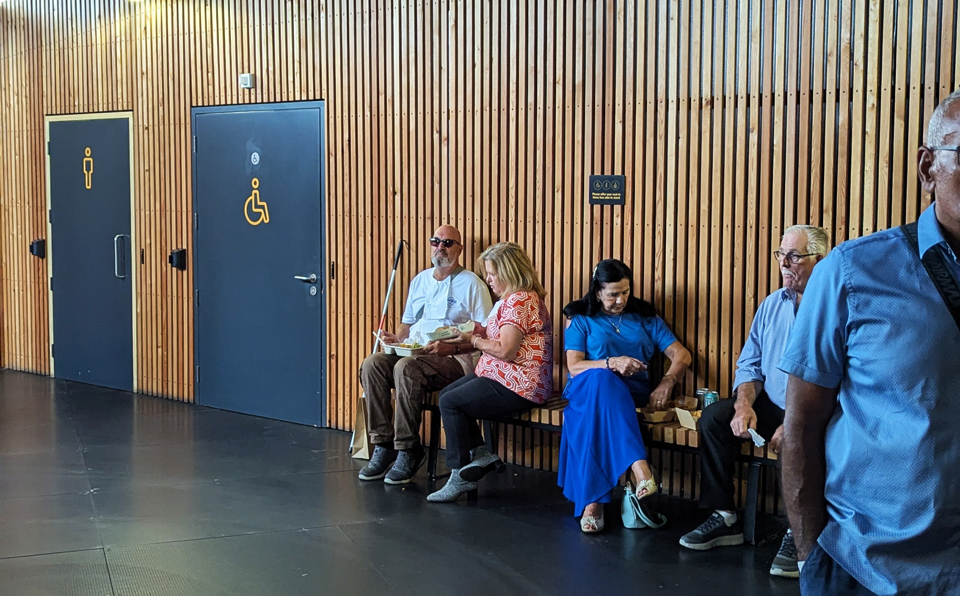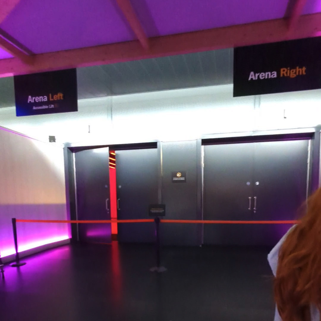 Two members of our party were arriving by car and using the Blue Badge onsite parking. When we all met at the car park entrance, a member of staff offered to show us into the arena and took us to Entrance B, which was quiet at that time.