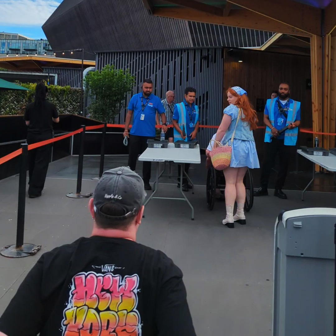 At the doors, there are tables for conducting security checks and a large number of staff members to ensure the process is quick. Once our bags had been checked, we proceeded to another member of staff, who scanned our tickets.