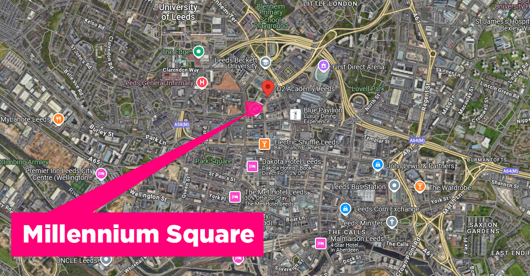 Millennium Square is Leeds’ award-winning city centre outdoor public space and live entertainment venue.