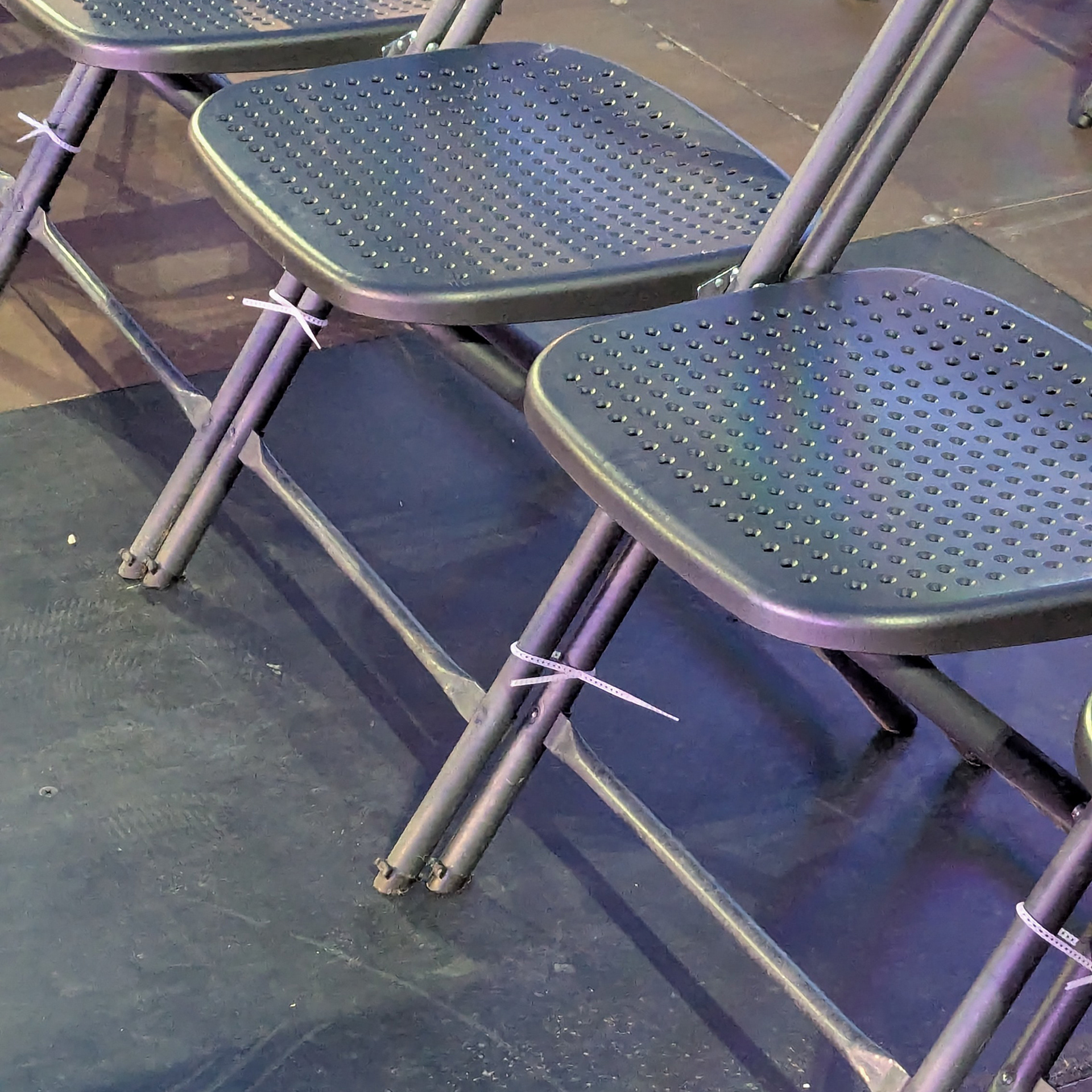 Seating for ambulatory access customers was to the right. There were 5 rows of fold up seats, fastened together with cable ties in rows of 6. Having the seats tied together maintained the space between the rows and ensured chairs weren’t moved to become a potential obstruction.