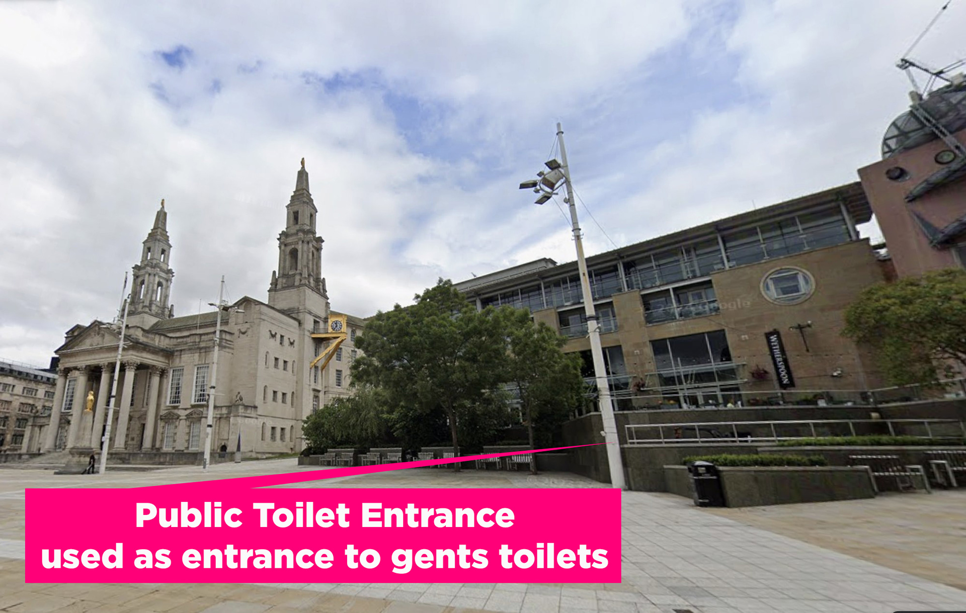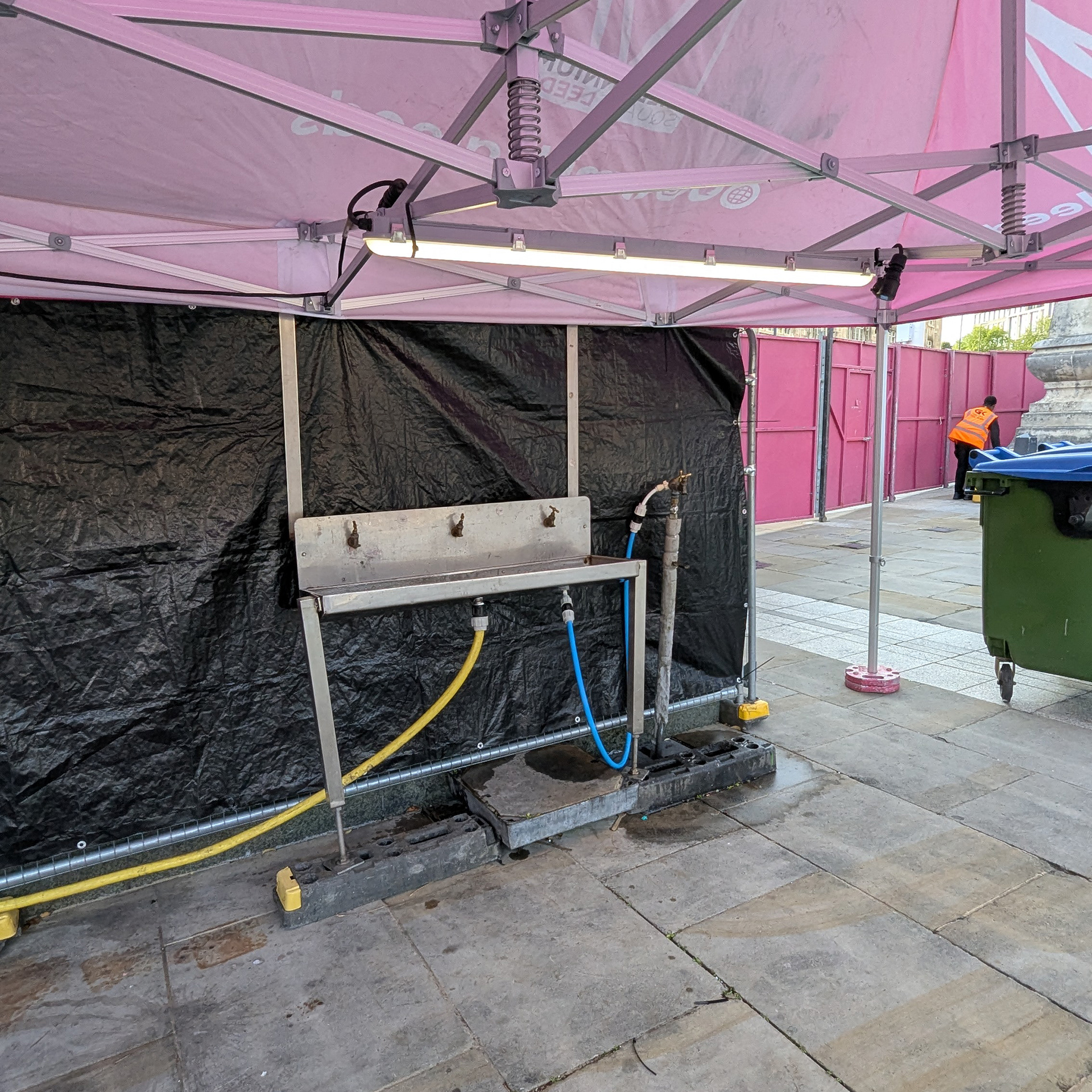 There is a minimum amount of facilities in the Square. In the northeastern corner, there are public toilets, including one that is accessible. With a single entrance down a sloping tunnel, it will cause a bottleneck when it’s busy. For this event, this entrance was designated as the male toilets entrance.