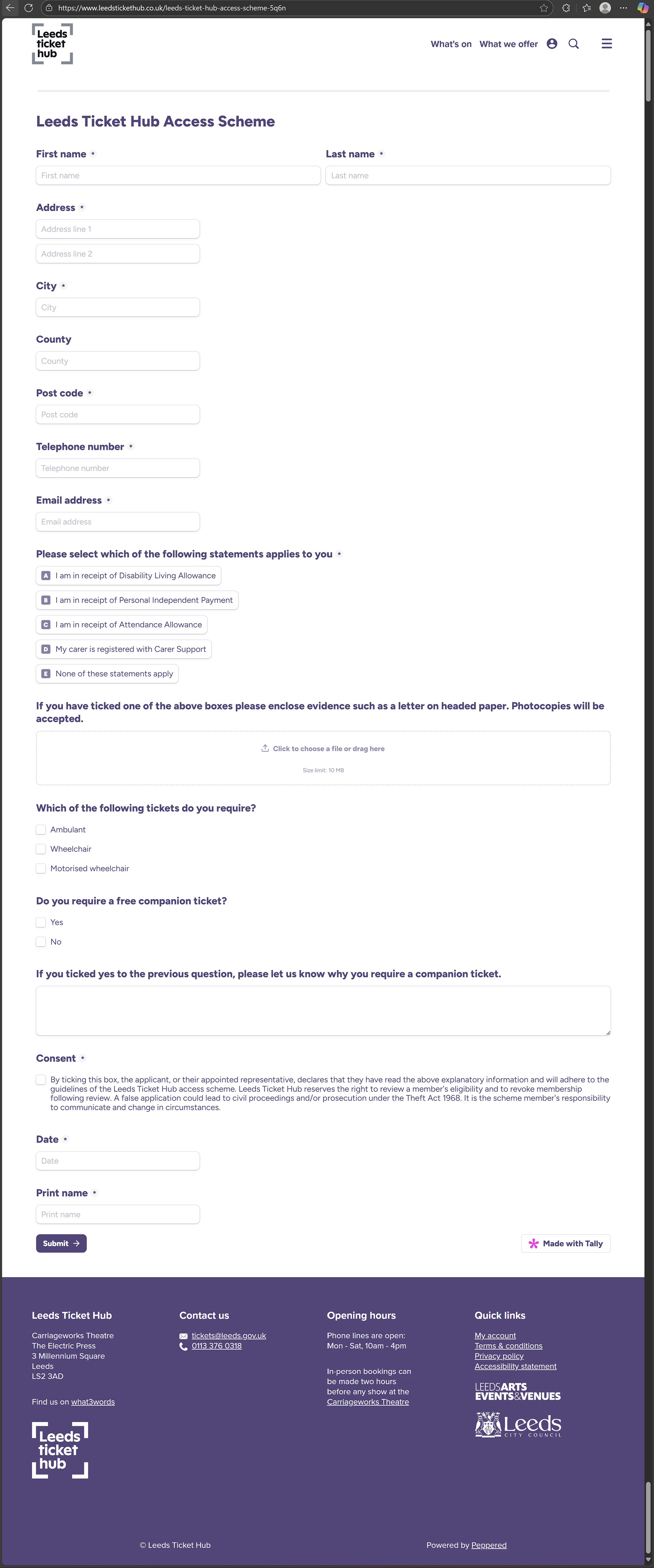 From that point, whenever you want to book tickets for any of their venues or events, you can simply contact the Ticket Hub, and booking is easy. Being registered with the access scheme also entitles you to a complimentary companion ticket.