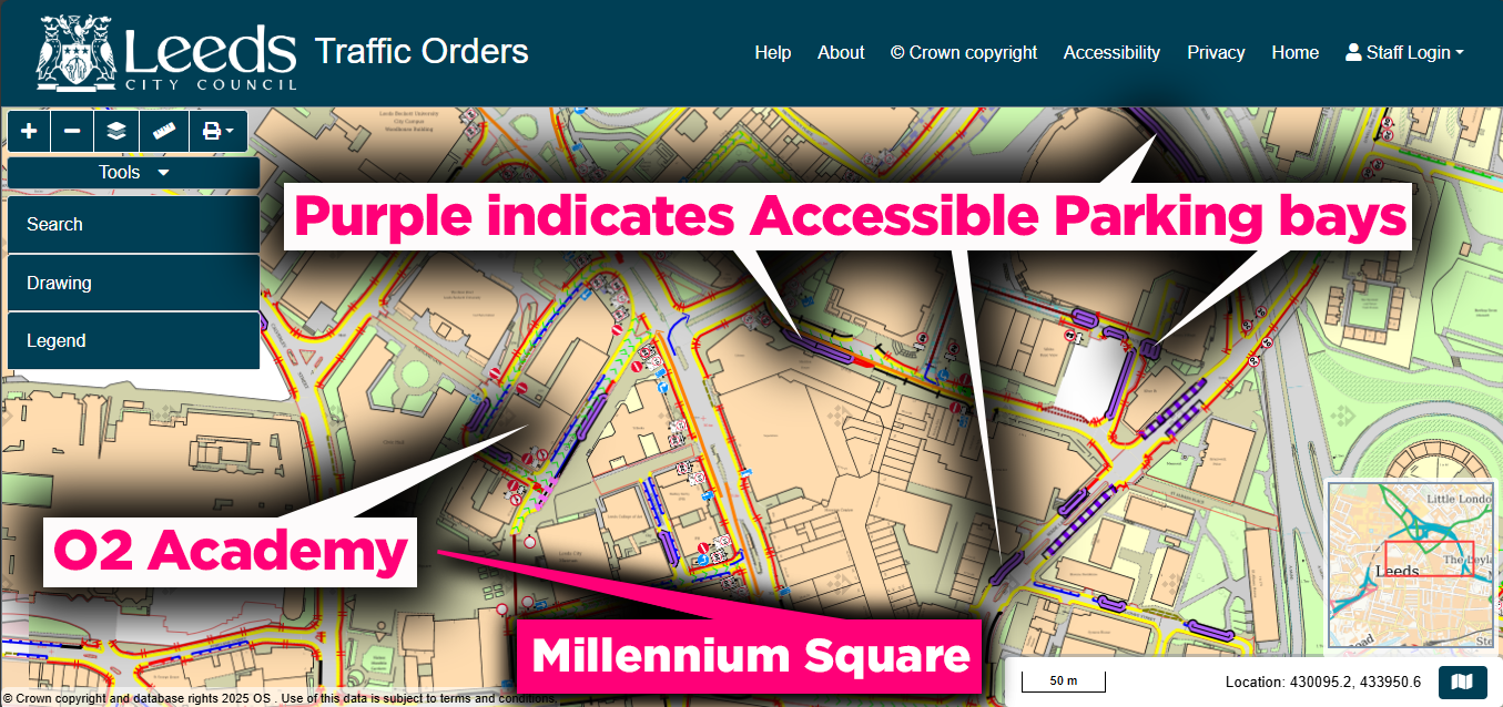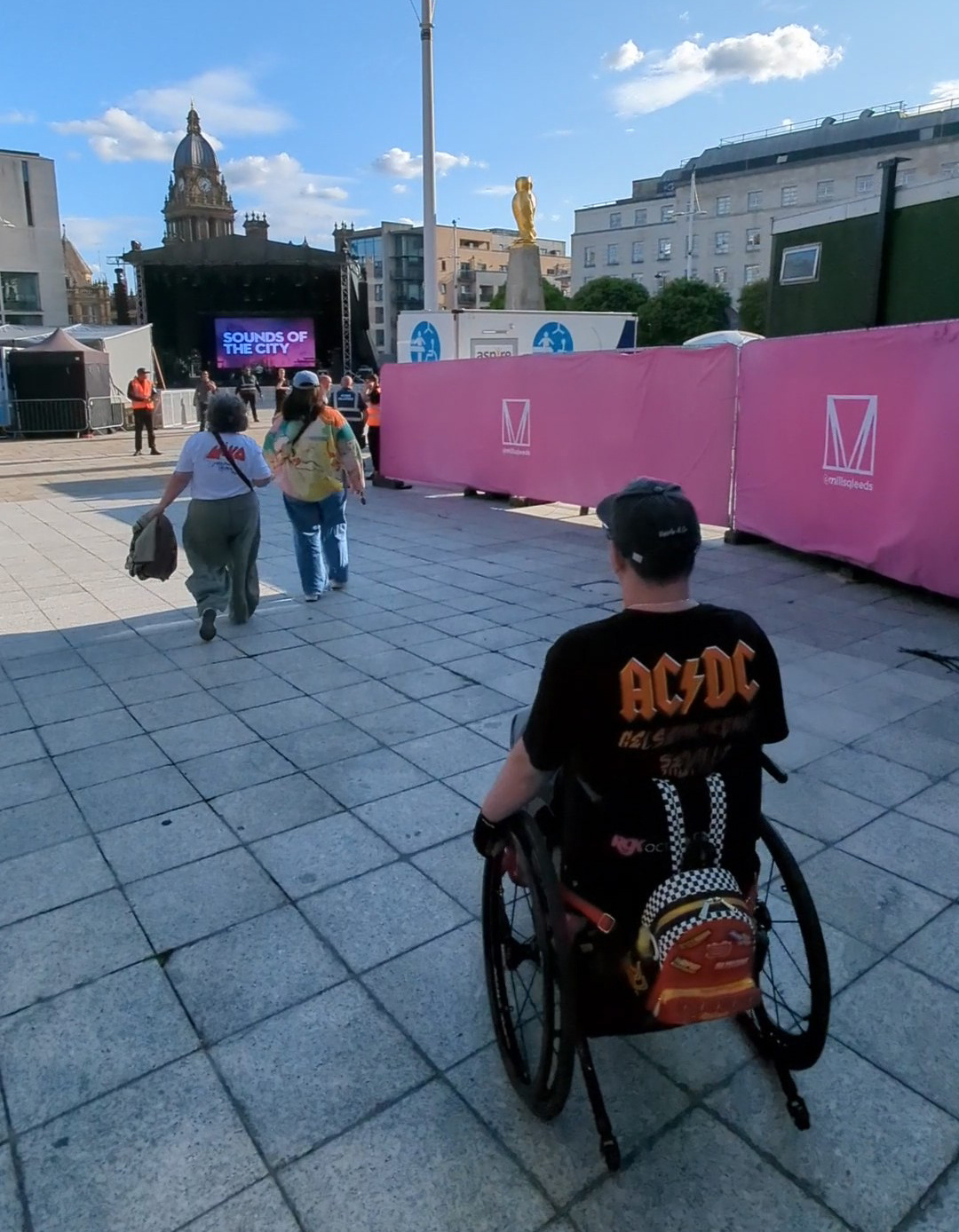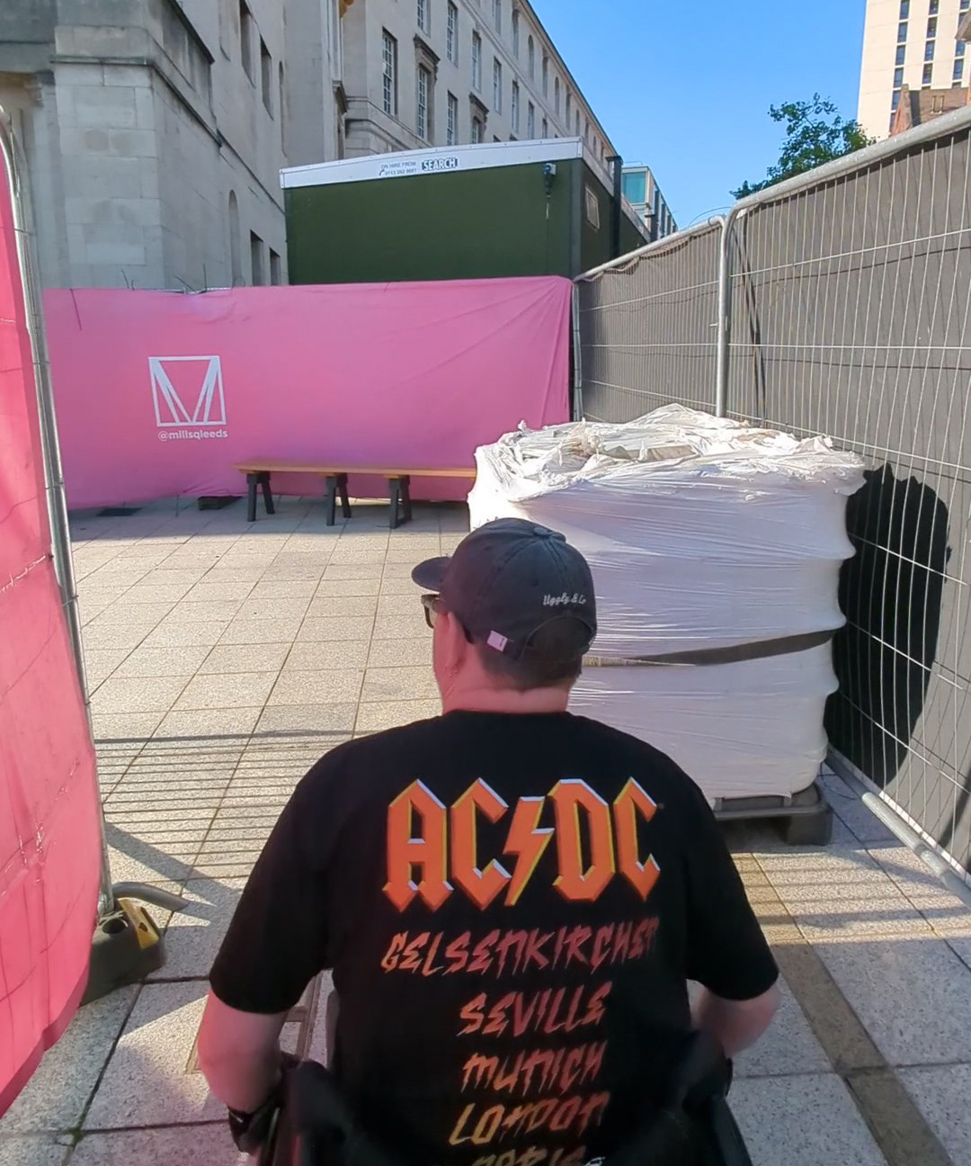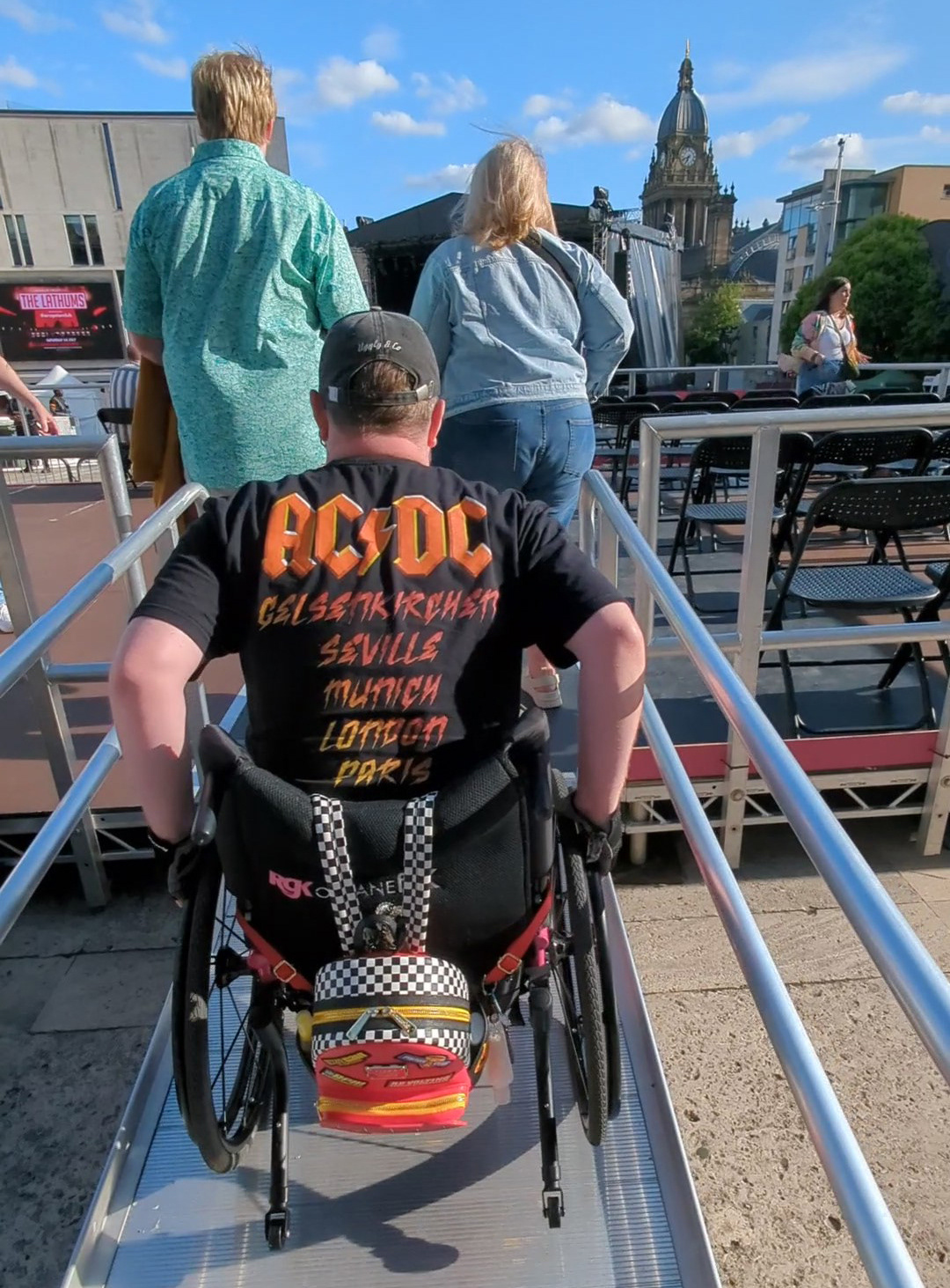 If you are driving into the city, there are many parking options depending on where you want to park and for how long. There are numerous accessible bays scattered throughout the city, but they have time limits. Most are 4 hours with no return within an hour. The best accessible option near the O2 Academy I’ve found is around the back of the First Direct Arena. There are nine bays; each bay is limited to 6 hours with no return within an hour. It’s only a 5-minute walk or roll down to the Academy. The only issue with these bays is that they are only available if there is no event at the Arena. If it’s an arena event day, staff from the arena will check your event ticket and take your contact details if you are parking there, and the 6-hour limit still applies.
