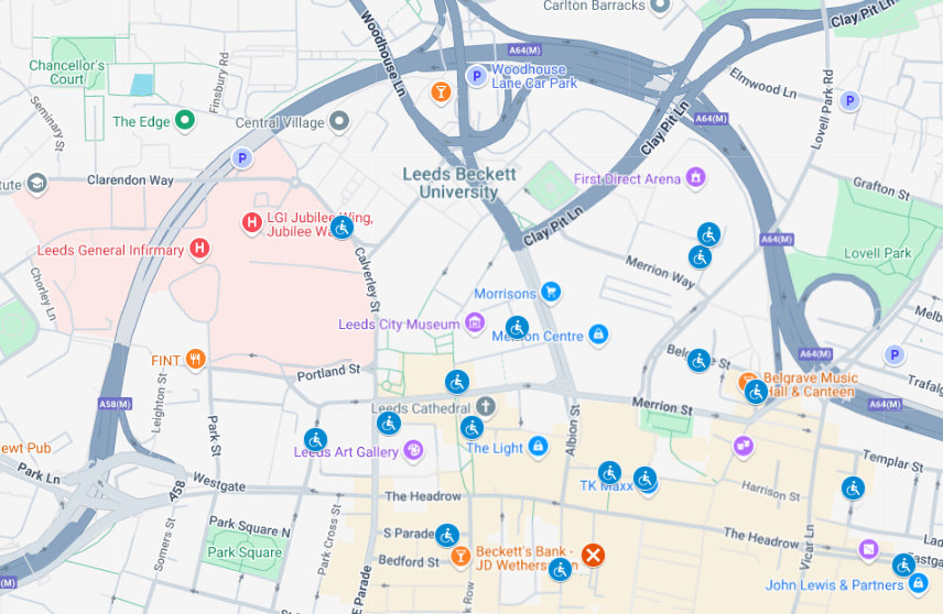 There are also many on-street pay-and-display bays around the city. As with most councils, parking is free and unlimited with your blue badge. Some streets behind the Academy get very busy, as the Leeds General Infirmary, with a Major Trauma Centre, is nearby.