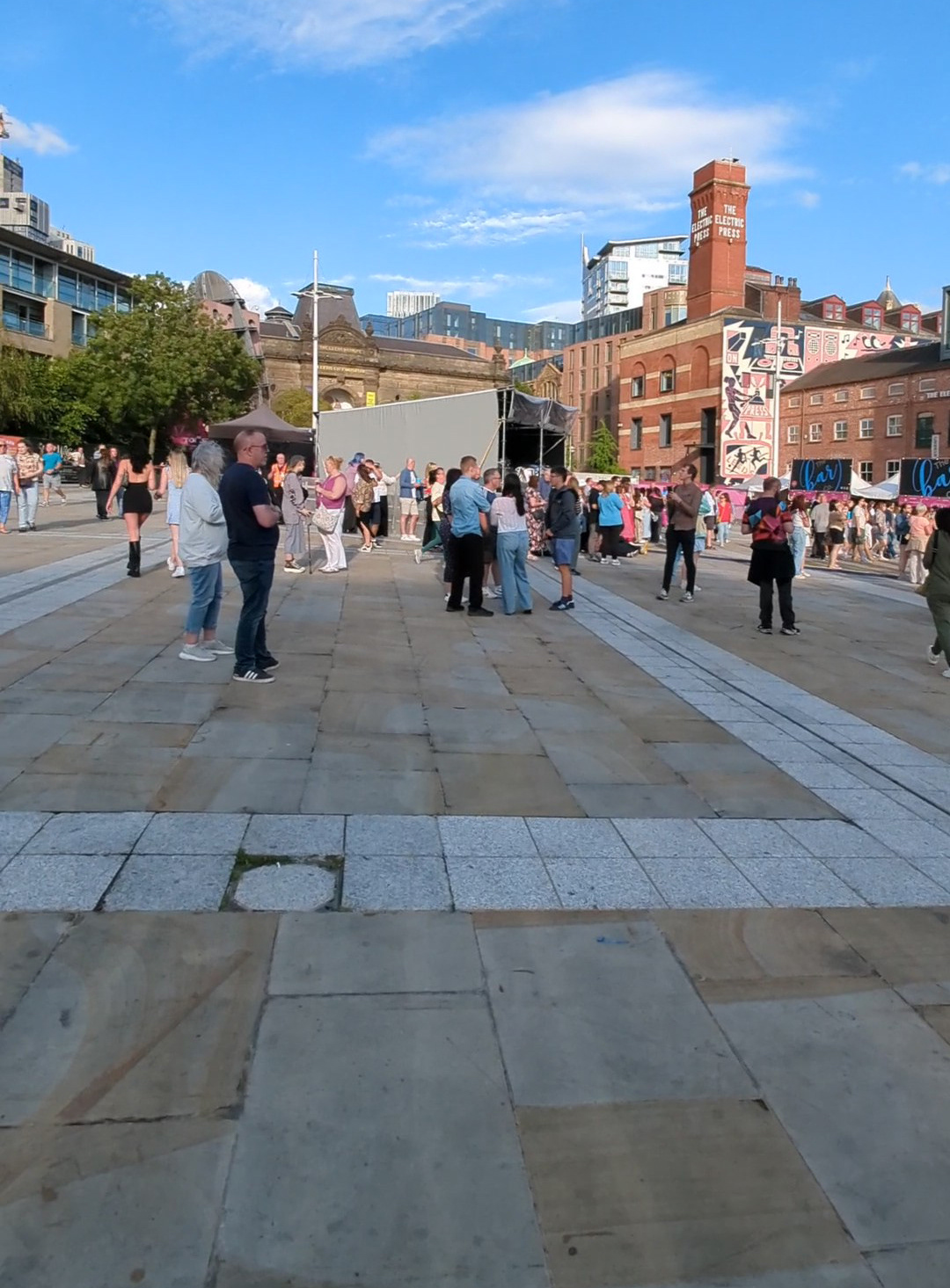 Millennium Square is a large, paved area used for a range of public events, with a slight slope from north to south.