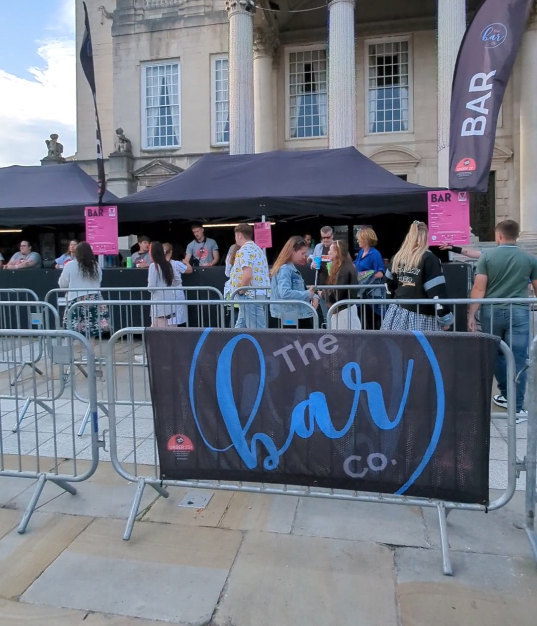 To the right of platform there was a large bar with a good selection of drinks. Beyond the bar, along the fence running along Calverley Street, there was a water refill point. The point consisted of a stainless steel tray with 3 turn taps. The unit was mounted at a high level so not reachable from a wheelchair and I would struggle turning the taps.
